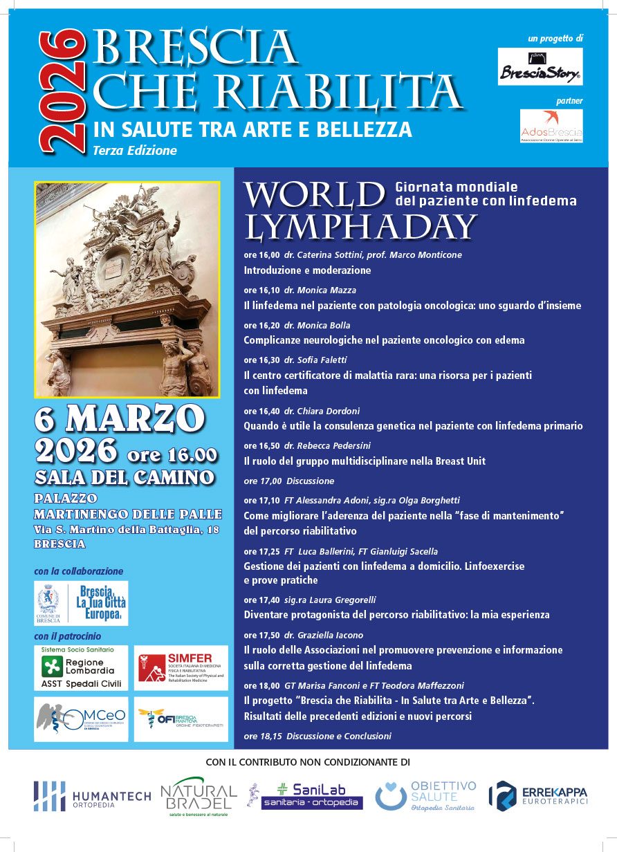 Il 6.3.2026 presso la Sala del Camino ci sarà l’incontro promosso all’interno del Progetto “Brescia che Riabilita”, una collaborazione tra la nostra Associazione e Bresciastory APS. Sarà spiegata l’importanza della attività fisica nei gruppi di pazienti con malattie oncologiche, Linfedema, malattie autoimmuni, diabete, ecc. …